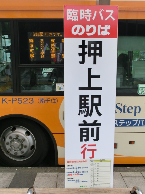 押上(スカイツリー)駅前行きの臨時バスも2番乗り場です。土休日は30分間隔で走り、既存のバスを補完します。